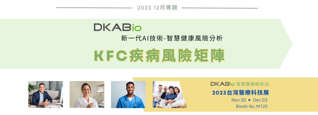 DKABio超前佈署健康!AI大數據資料的運用,將健康管理延伸至亞健康、健康者族群,達到真正的精準健康成效。除了提供DKABio智慧健康風險分析服務,今年更推出新一代AI技術「KFC疾病風險矩陣」,能夠預測未來1-5年內14項慢性疾病的風險值,幫助民眾制定個人化且實用的健康改善計畫,讓健康管理更有效率。